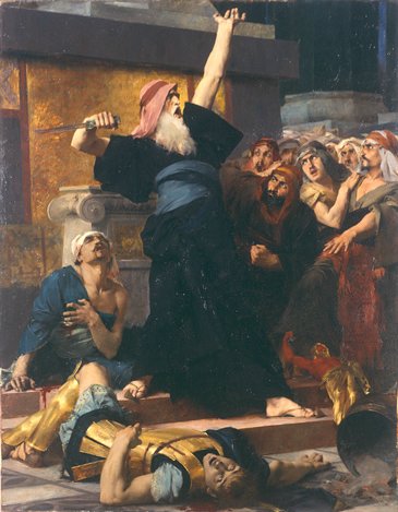 Il tue un Juif hellénisé qui s’était soumis, exécute ensuite l’officier royal, détruit l’autel et rallie les hassidim (pieux attachés à la stricte observance de la Torah).